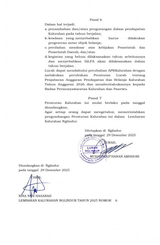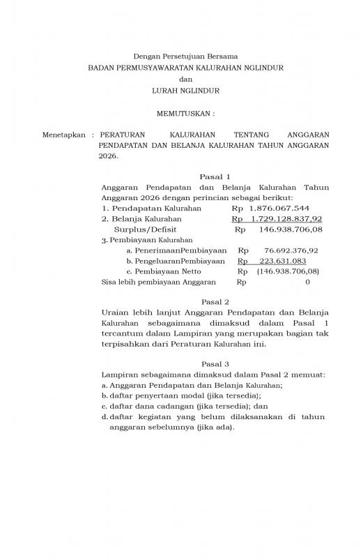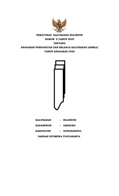 Kalurahan Nglindur mempublikasikan Anggaran Pendapatan dan Belanja Kalurahan (APBKal) tahun 2026. APBKal ini merupakan rencana keuangan tahunan yang menjadi dasar pengelolaan keuangan kalurahan selama satu tahun anggaran.